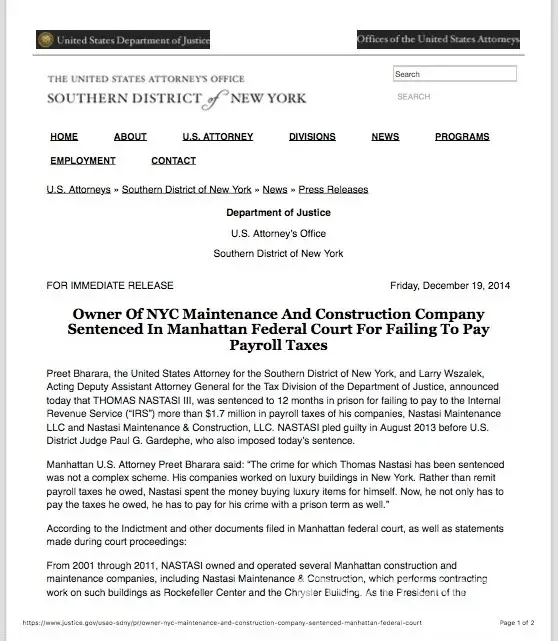 Read full complaintNastasi Maintenance and Construction - Thomas Nastasi III and Gabrielle Nastasi