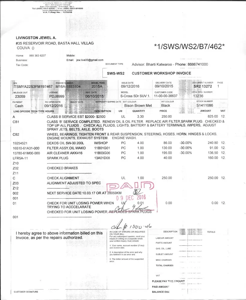I am so disappointed as my trust was badly shattered due to this incidence. I onyl go to Suzuki Motors for reliablity and trust otherwise I can go to any street work shop for same services. I am deeply hurt due to this incidence and will never ever go to ANY of Suzuki show room from now onward and will advice the same to all my dear one's. I will prefer road side work shops as same is going on at Suzuki "authorised" dealers.