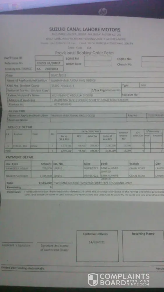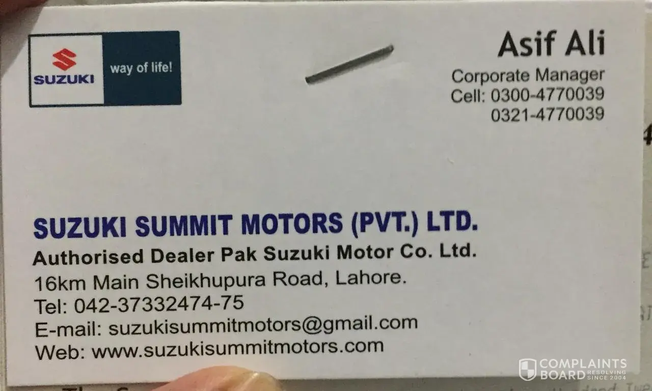 Fraudulent booking by suzuki summit motor, Lahore, Pakistan