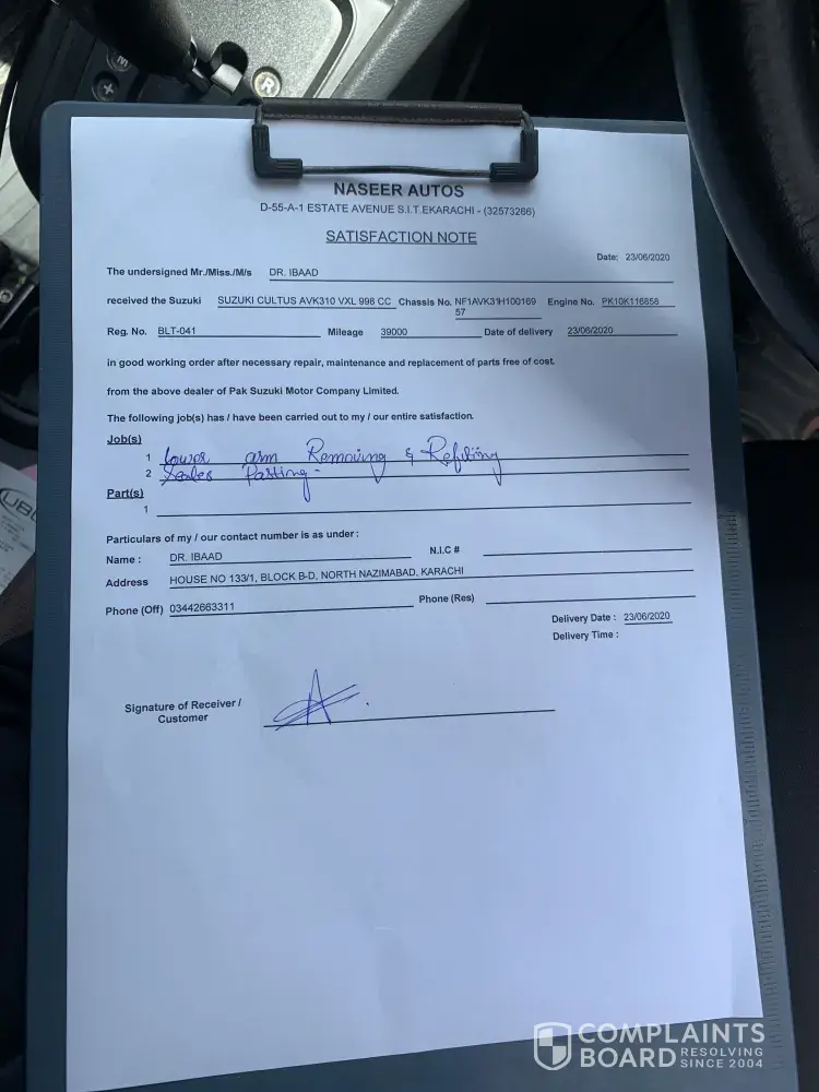 On the 4th time, they told me that Pak Suzuki had officially acknowledged the problem and they did lower arm pasting (I didn't remember the exact name) but the issue remains the same. (work done on Mecca Motors). After that Mecca motors was converted to KIA Mecca motors.