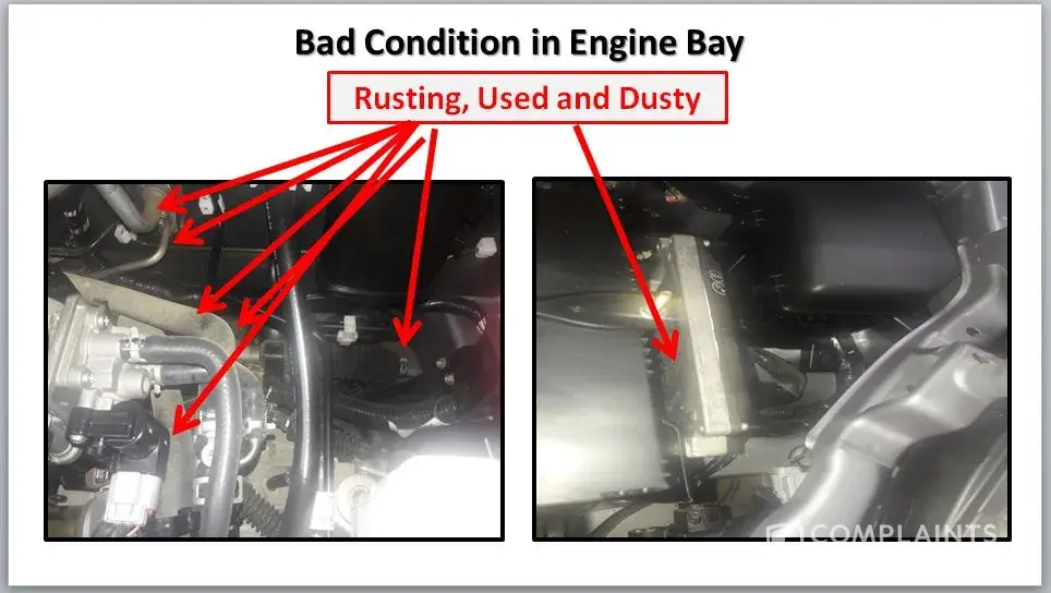 The undersigned visited the assigned dealership (Suzuki Nadeem International) on 02 October 2019 to collect the vehicle. There the relevant Suzuki personnel presented delivery acceptance form to undersigned when in fact the delivery was not made physically yet. When the physical inspection of the car took place later on, the undersigned was shocked to find that the car looked worn out/used with permanent/prominent rusting marks all around Engine bay, brake drums, Shocks spring, back side of car silencer etc (Snaps Attached). The tires and overall condition of car were also pathetic and gave the impression that the car had been used or utilised for test drive purposes. Further, no inspection was done for interior, meter, navigation, battery etc by the undersigned. Kindly note that these observations are based on unprofessional scrutiny of the vehicle outer look only however there must be possibility that the car's overall integrity has been compromised due to mentioned rusting/damaged if proper and professional scrutiny carried on.