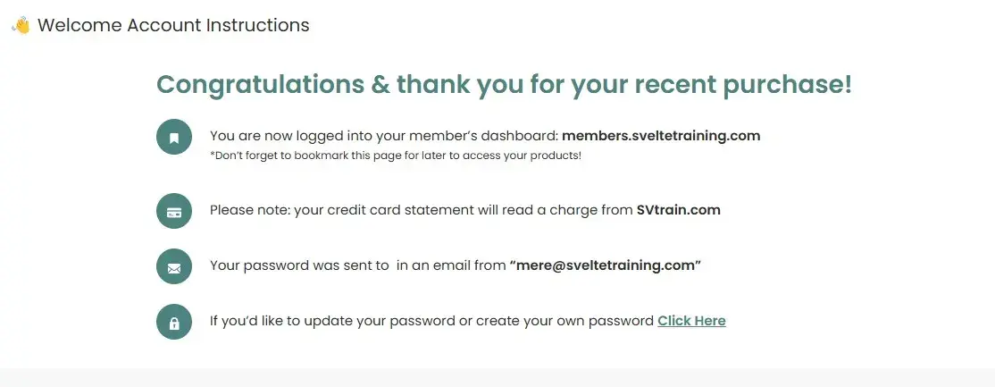 I just ordered the one and done, it has cleared my account but I have not received any emails with my login info. I checked my spam and it is not there either. Please advise
