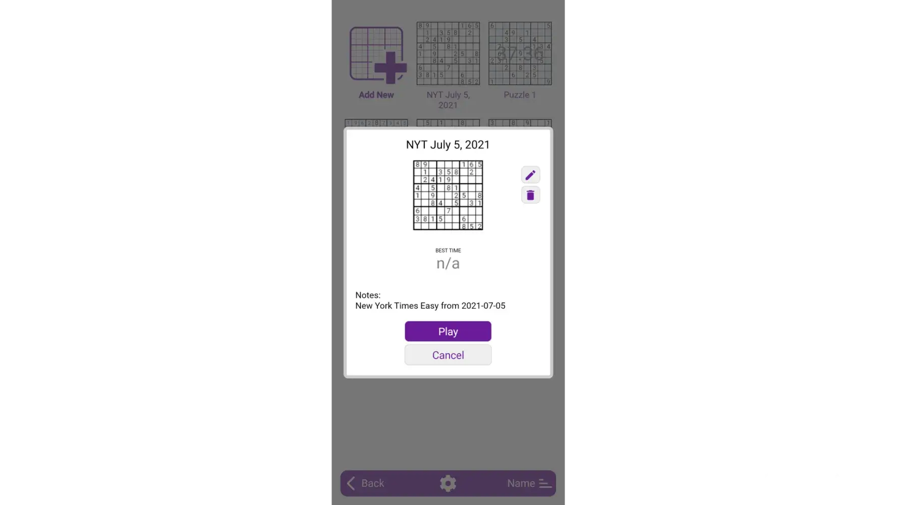 Some suggested improvements: It would be very useful to allow puzzles to be renamed and also support notes. And, at least for the iPad, supporting split screen would make entering new puzzles from other sources more easy. Also, you cannot use the Apple pencil to click back to the main puzzle list. And finally, the highlight matching cells feature is quirky at best: you often have to double-click several times to get it to work.