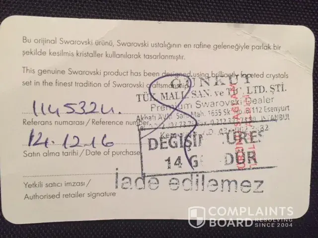 swarovski pen complaint