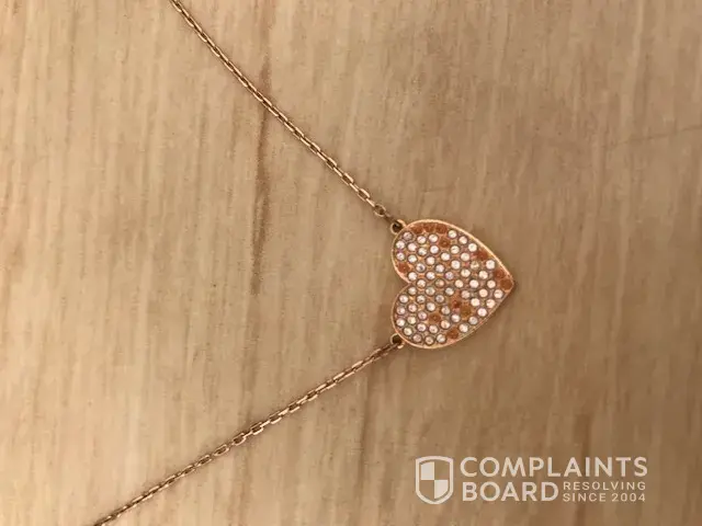 brought the Necklace out to me and a good amount of the diamonds on both the heart of the necklace and the Swarovski Swan have fallen off. I would