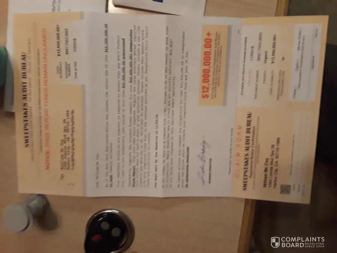 I would be helpful to know how to report such rip-offs to the authorities. This bogus company needs to be shut down and should not be allowed to use the US mail to deliver their scams to the public.
