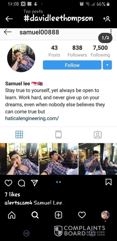 Olá...também fui vítima desse Joonwie que se diz morador da Tailândia. Me mandava mensagem todos os dias e me estorquiu. Tentei realizar a denúncia do perfil no instagram mas foi negada. Abram o olho c esse cara aí.