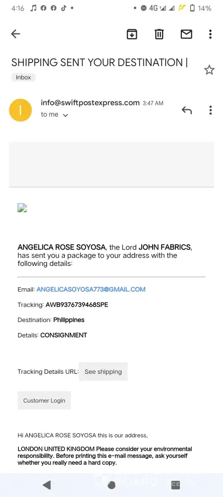 Anyway, he had no idea that I am currently working in a logistics company. Seeing the email at first glance already looks like a fraud. That's how I got here. He blocked me now when I deleted him first. Lmao