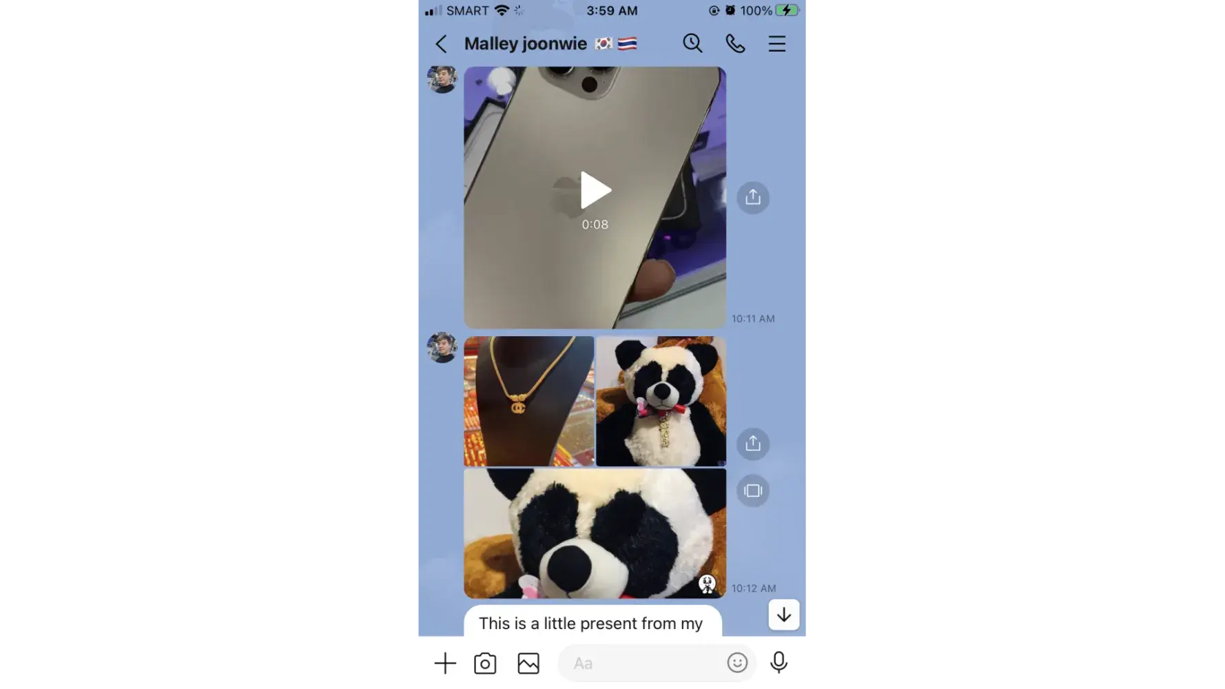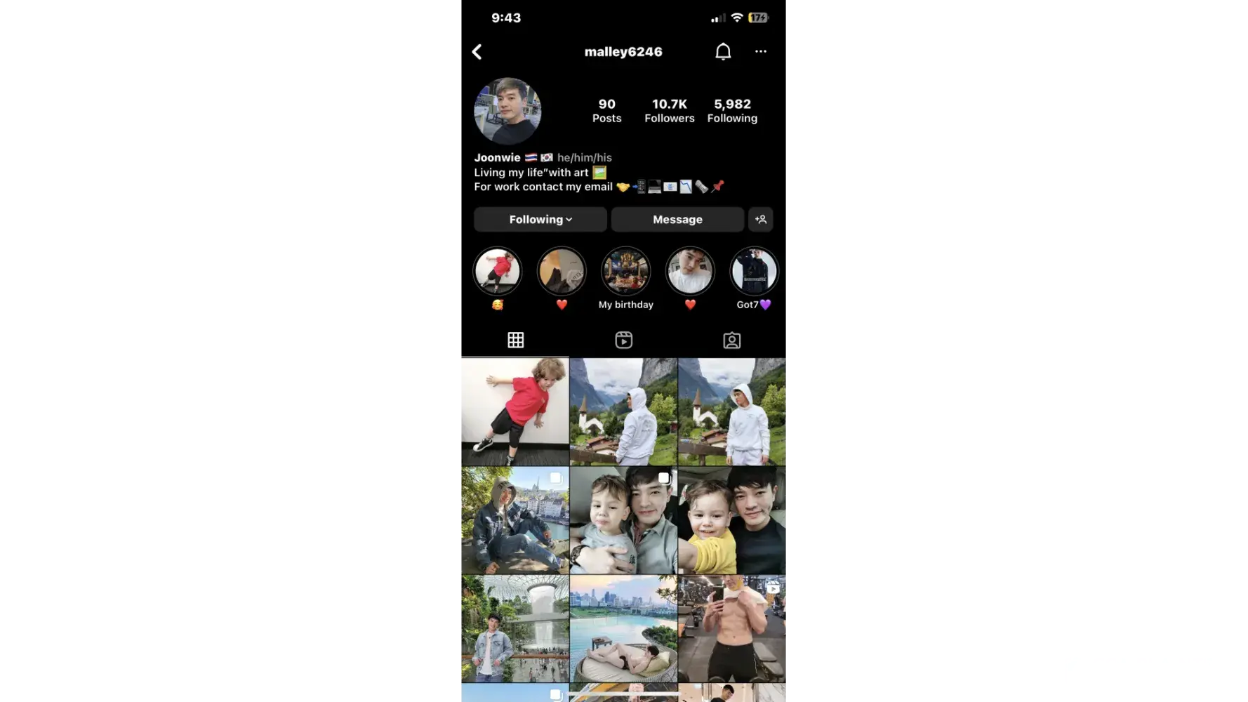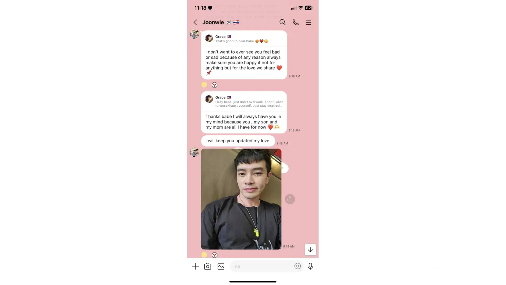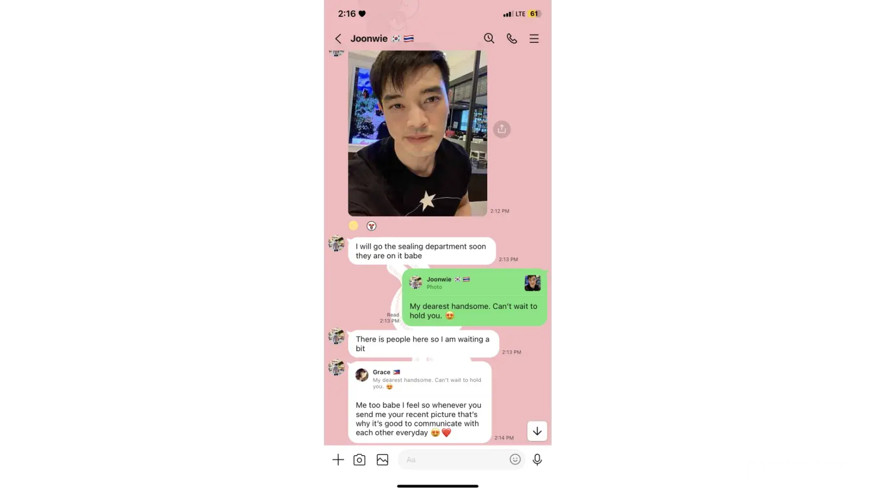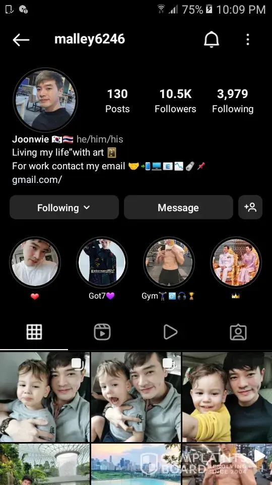 So this guy named Malley Joonwie messaged me on IG. He said he lives in Thailand his line account shows South Korea and Thailand's flag. He posts a photo of his son and family. Do not be deceived.