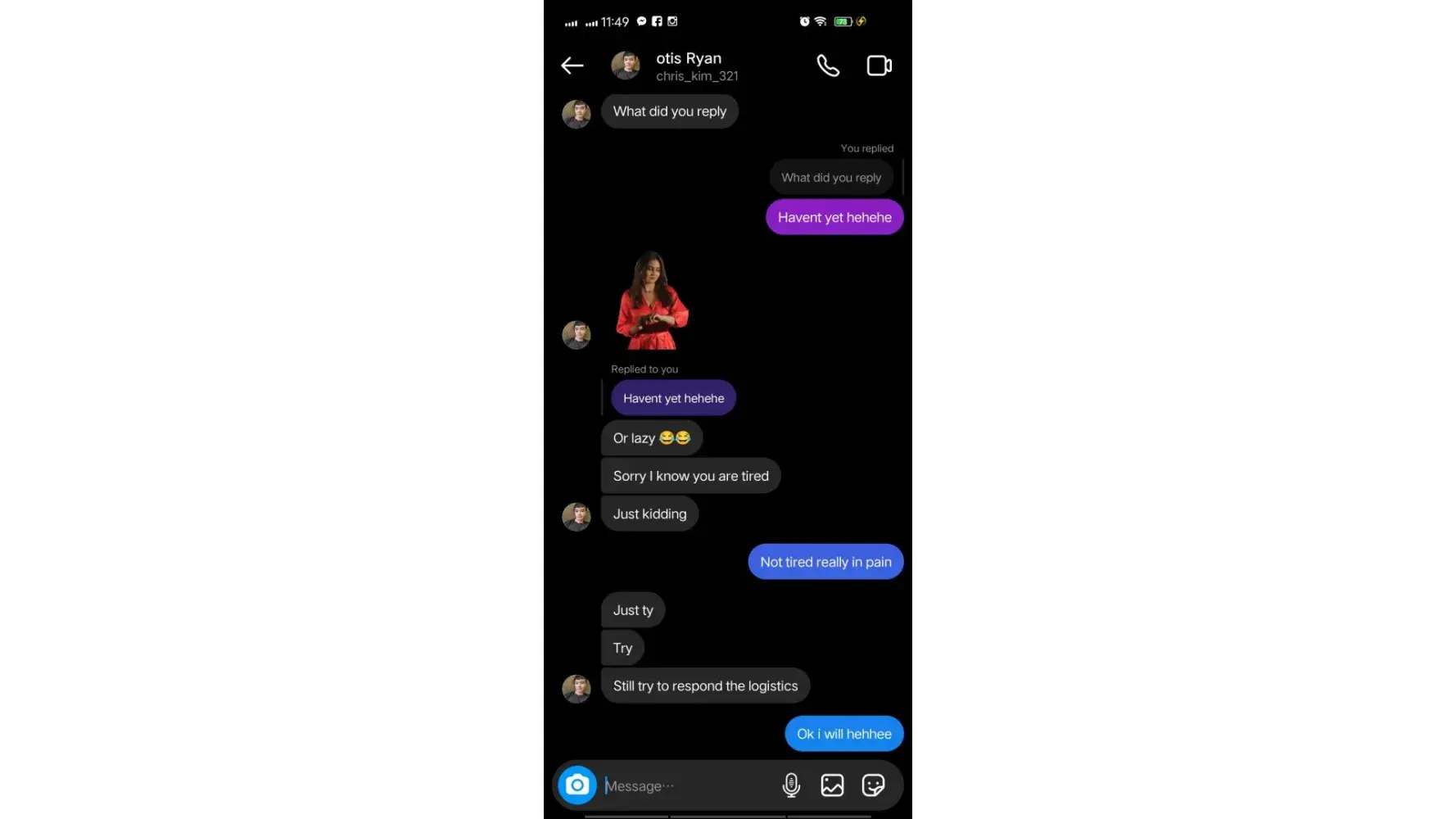 Right now! That photo he messaged me IG.