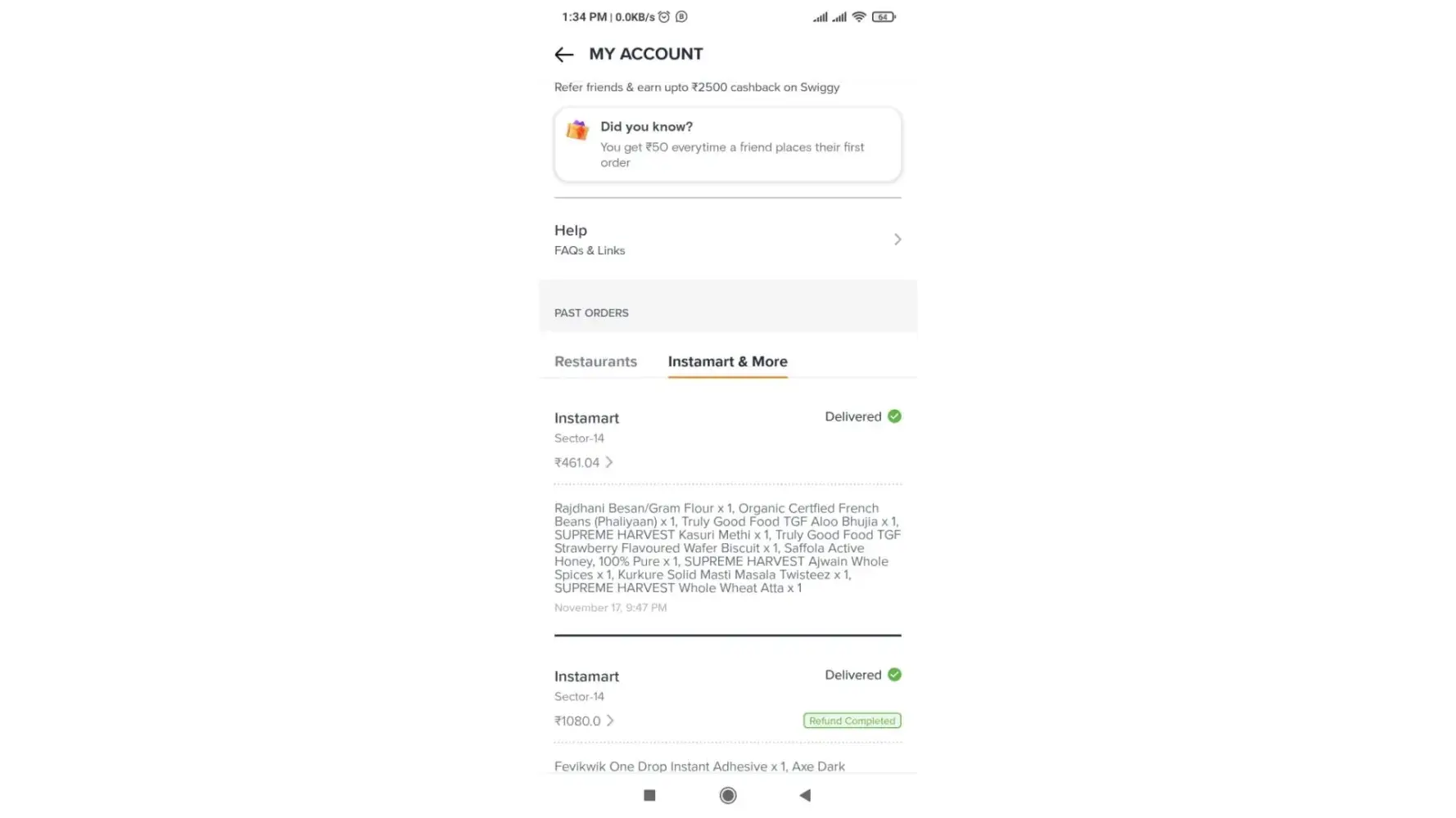 Amount has been deducted from my bank and showing in swiggy instamart app as order delivered