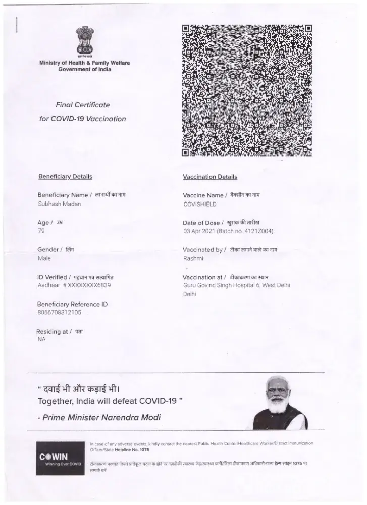 Booking done on 24April 2024 by Swiss Air. Booking code no: OJLIFQ Business Class return fare for 2 Passengers namely Mr Subhash Madan age 81 yrs and Dr Ms Sunita Madan age 80 yrs. For travel DEL-ZRH-IAD on 01Aug 2024 and return IAD-ZRH-DEL on 25August 2024. Due to disclosures by Corona vaccine maker AstraZeneca, deposing in UK Courts that their corona...