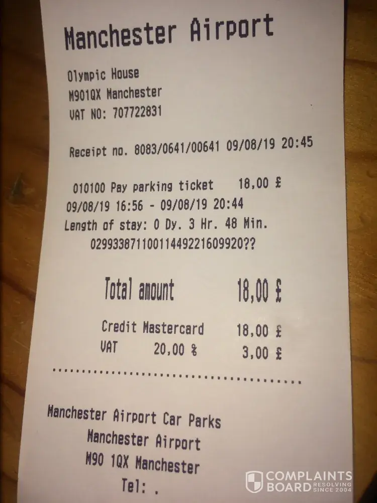 My elderly father was waiting to pick me up and accrued a parking bill of 18gbp, please arrange compensation for this.