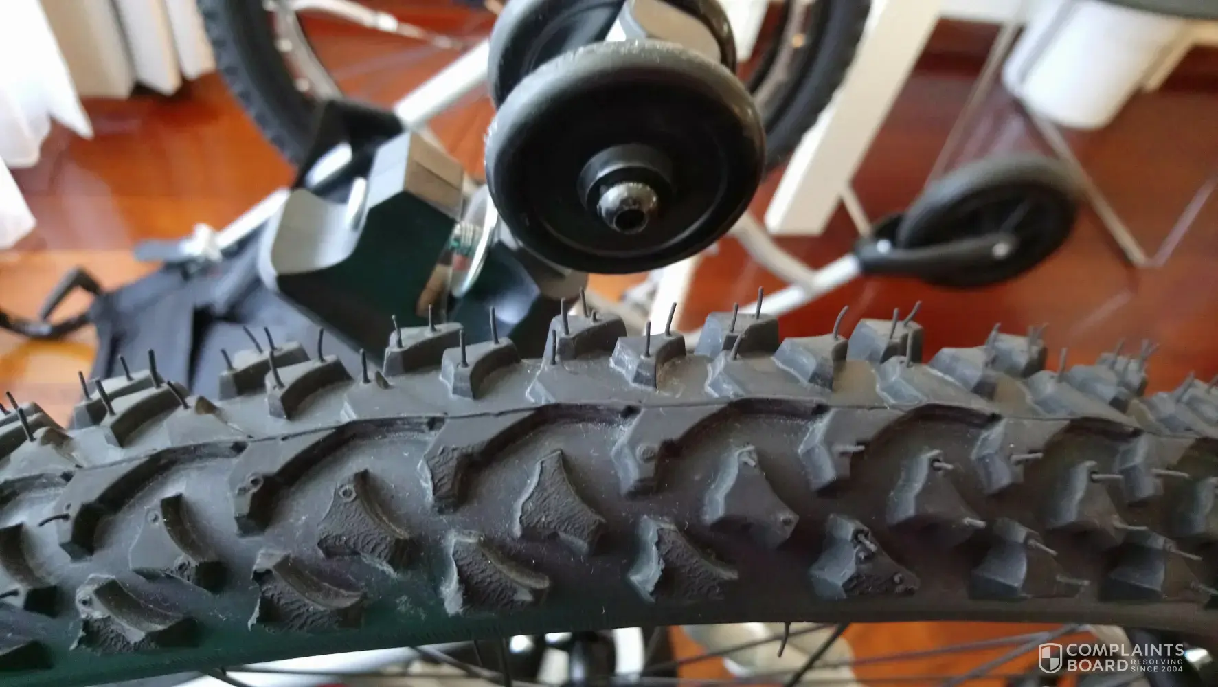 Upon reaching our destination we found the bottom of the wheelchair bag had been ripped to shreds. The wheelchair initially seemed ok until we came to use it. Upon inspection we found the tyre edge was damaged as was the hand rim, anti tips and footplate, The wheel spindle which holds the wheel on was also damaged, the bearings casting was detached from the centre of the spindle meaning the wheelchair was not safe to use and the wheel does not run true and catches on the side panel. The wheel would not attach properly and would become loose and fall off in use. This wheelchair is a multi-terrain one which has 24" mountain bike tyres on it.