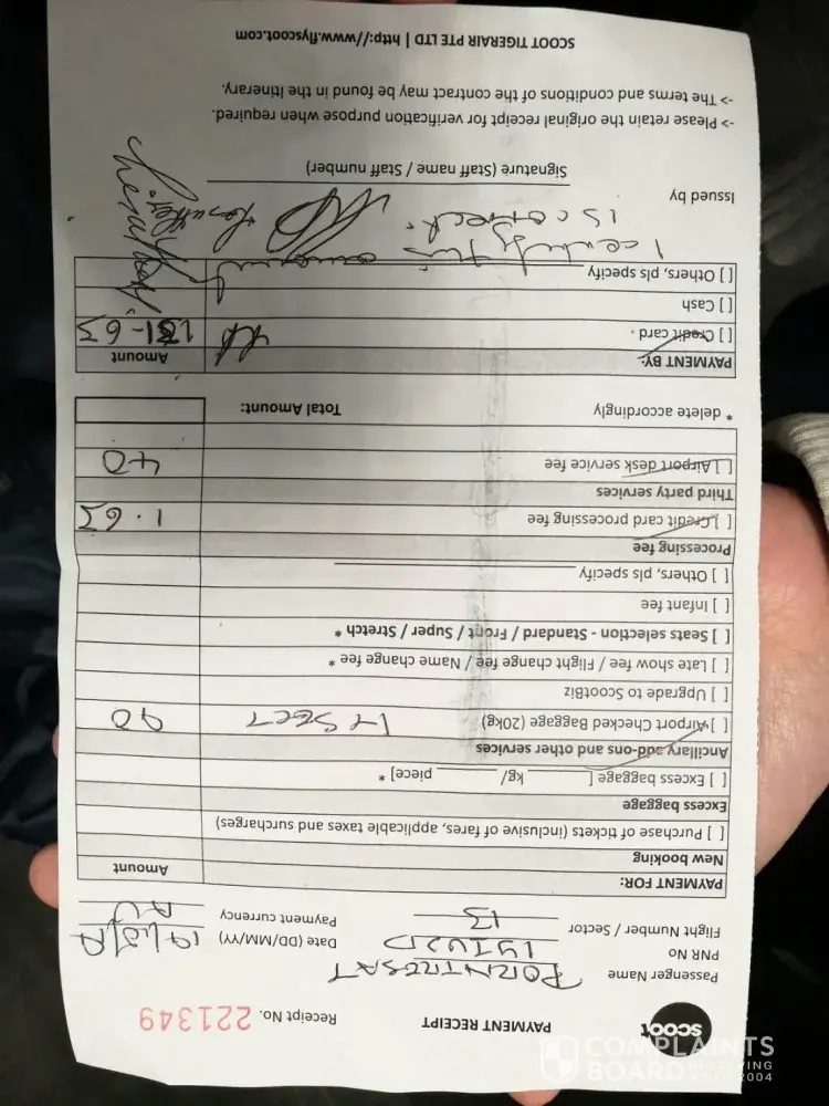 2. She wrote the detail correctly but the sum up was wrong, luckily that I checked so I got back again and ask her to correct it, fine she said sorry but she refused to make the new one instead just rewrite on the same receipt. I was even fair enough to be ok with it as she said it is subjected to regulation .so I just wanted her email in order to contact in case we could not claim with the agent and may need another confirmation from the airport but she did not give us her email and said that every human being should be able to sum up this correctly