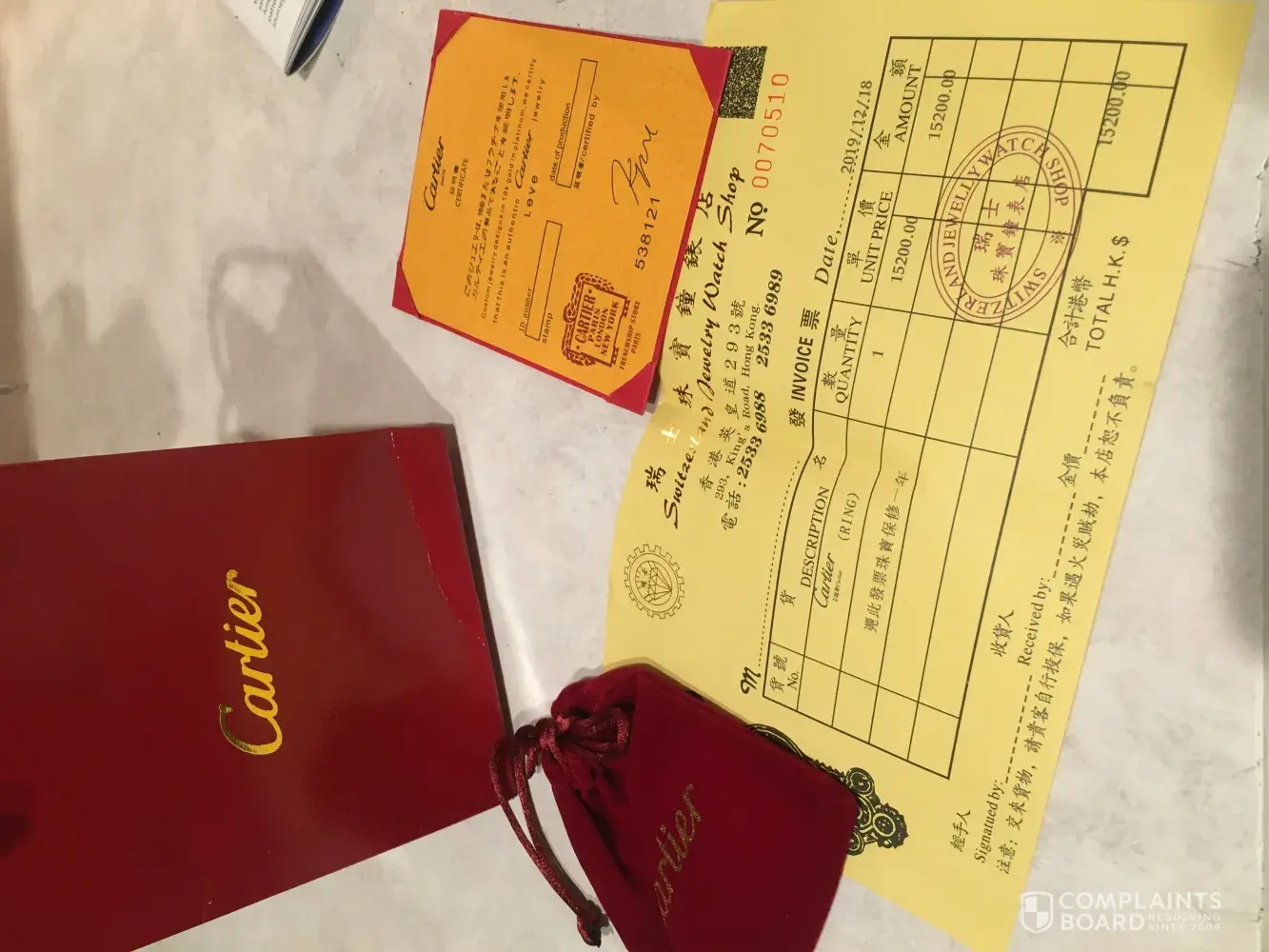 I have received a Cartier ring from The Switzerland Jewelry Watch Shop, King's Road in Hong Kong. I have not ordered this and I want return it. I'm in Copenhagen, Denmark. Please contact me at anneberg15@hotmail.com.
