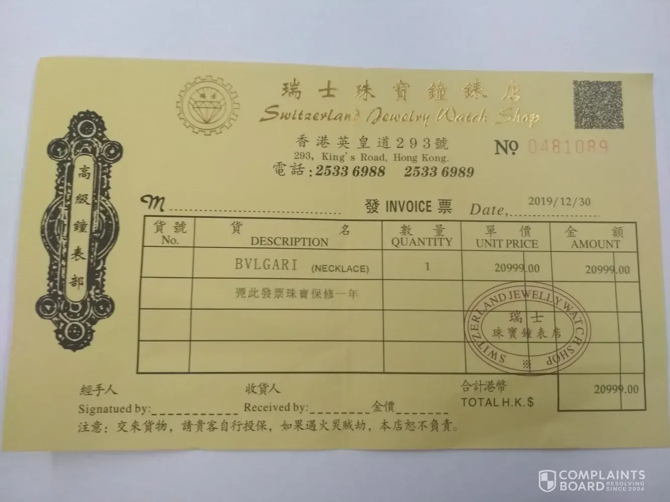 It was a necklace that the invoice declared that the value is 31600HK $.