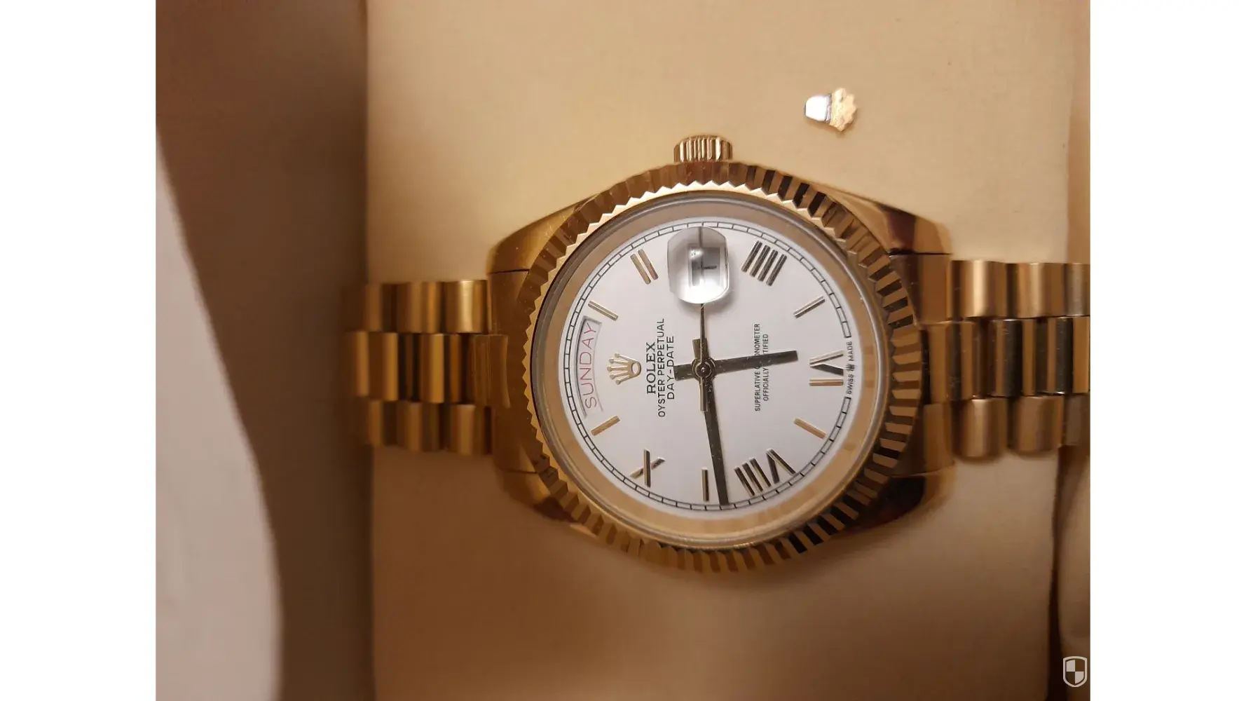 It was advertised as an authentic Rolex watch and clearly it is not. Plue chrystal is cracked and date funtion does not work