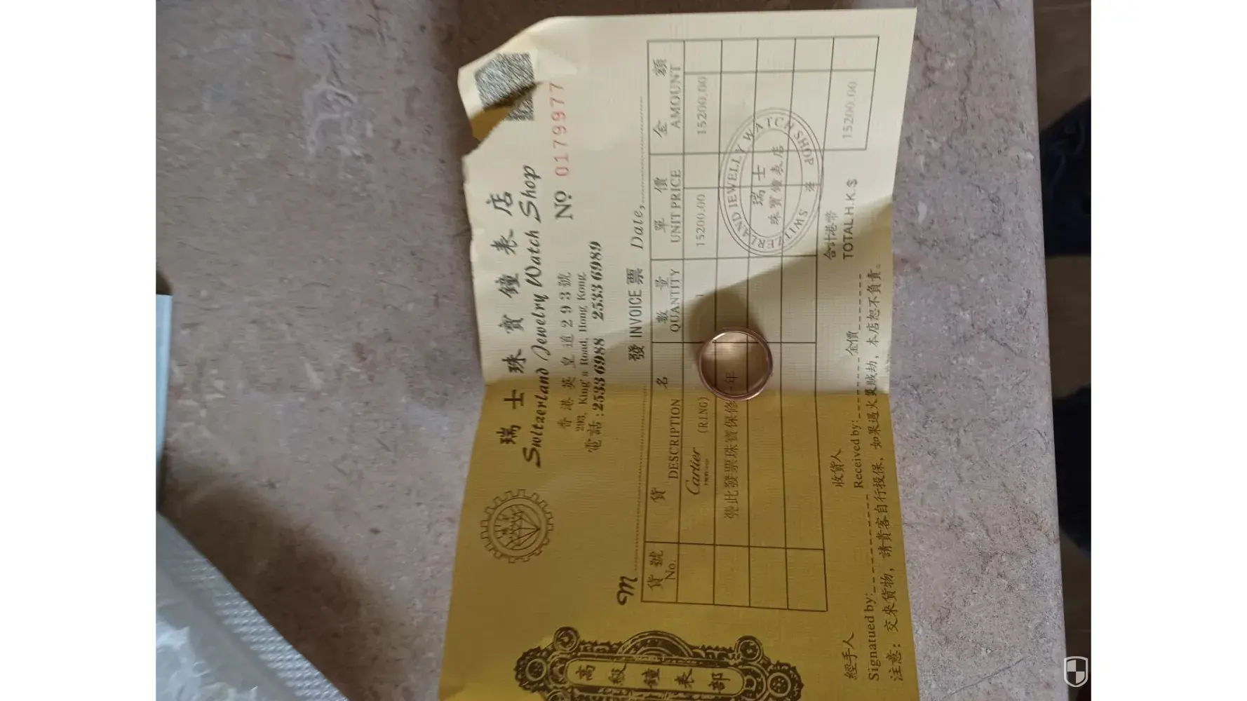 I have also received a Cartier ring with same invoice of (15200 HKD) Switzerland Jewelry watch shop with tracking number of LV765653765CN. I had never ordered this. I had ordered for clothing on a london store and I received this as the shipment.