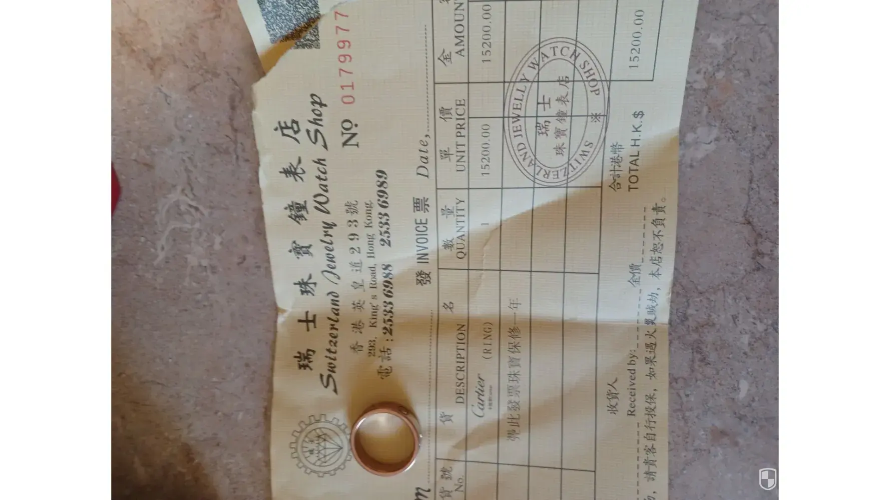 The ring looks fake and together cane a invoice that says 15200H.K$