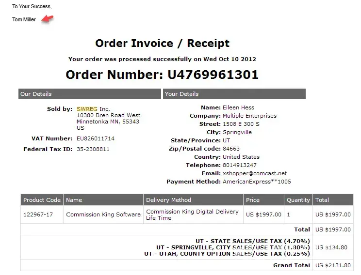 There was a 2nd email they sent me (from a company called "SWReg") with the billing information for the $24.99 and the receipt embedded into the email msg.