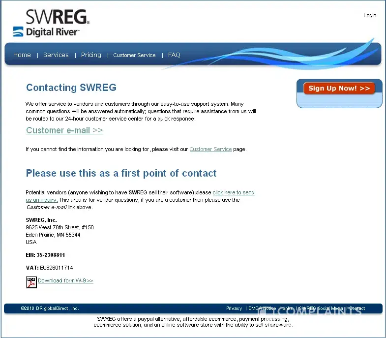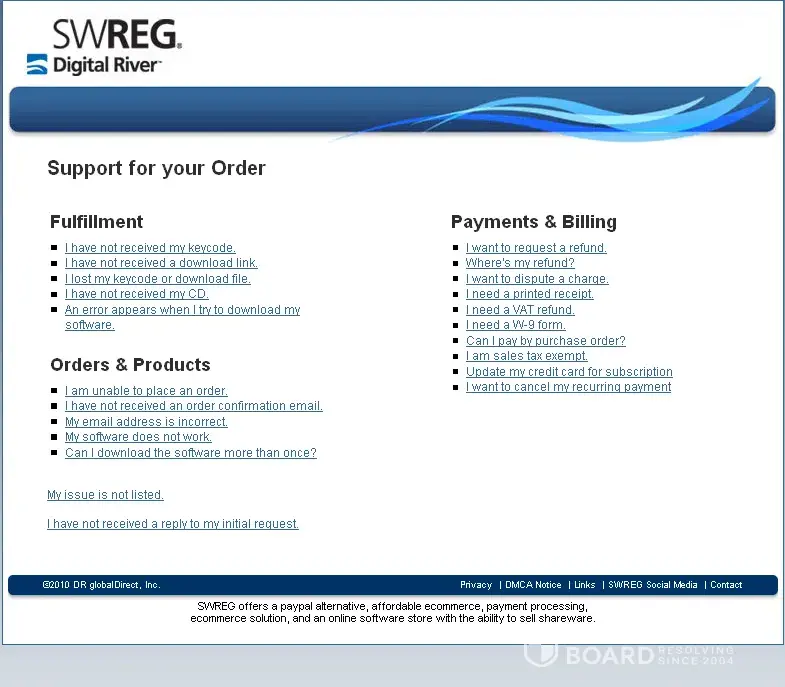 SWREG accepts business from highly questionable Internet scam sites. SWREG will not respond to your help tickets when trying to obtain a refund from scam businesses they process funds for. In my opinion this makes them complicit and a party to fraud.