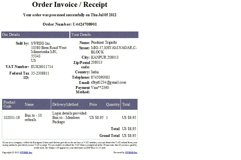 I've paid by Bank wire Transfer through my bank in Nigeria Guarantee Trust Bank (GTB) for an Online Business (Income Builder) to Swreg Inc. wire collection acoount - J.P Morgan Chase Bank, 1411 Broadway, 5th floor New York 10018 USA. My order number is U29881714. I made this transfer for like 2 weaks now but no reply yet from them. I just hope they have gotten it.