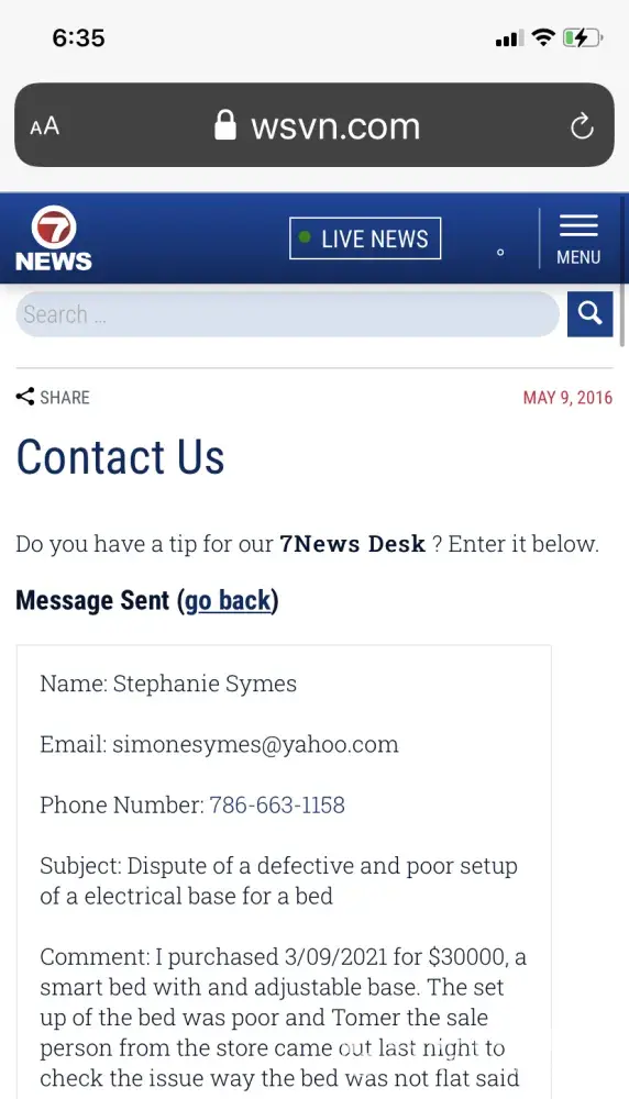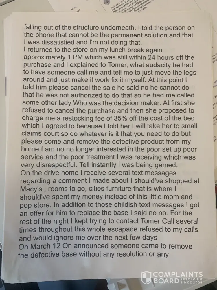 The merchant breached their contract; he took the adjustable base bed back and left me with bed rails - which is not what I purchased- he has ignored all communication to resolve this issue from March, 2021