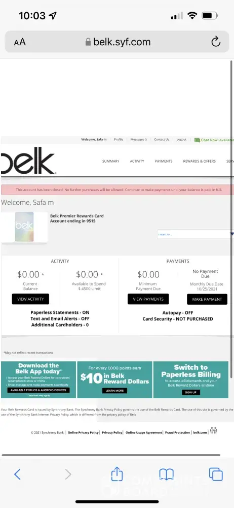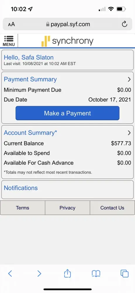 Do not use Synchrony bank they offer no good customer service and they do not care about you as a customer and they do not honor the code of ethics and they brake the laws. I can not; NOT RECOMMEND THEM ENOUGH.