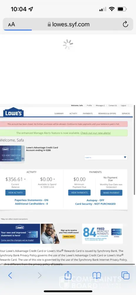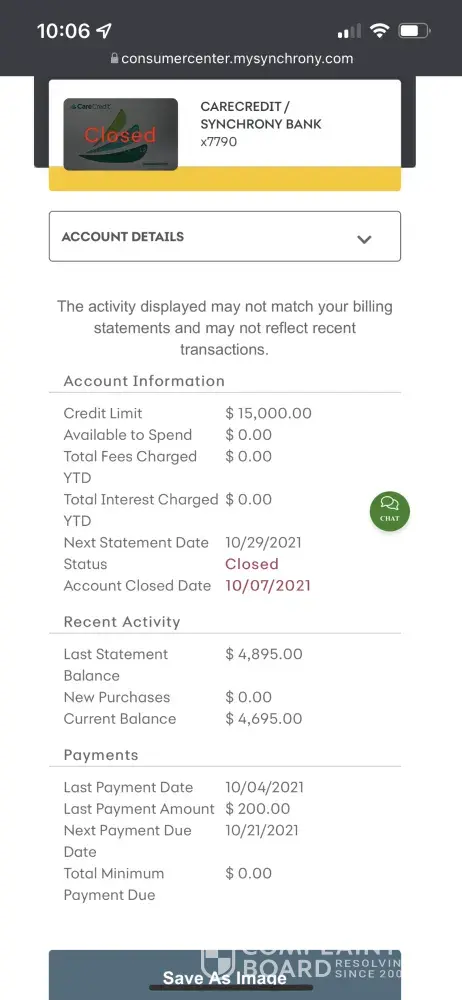 Synchrony Bank Fraudulently Closed My Account To Negatively Affect My Credit