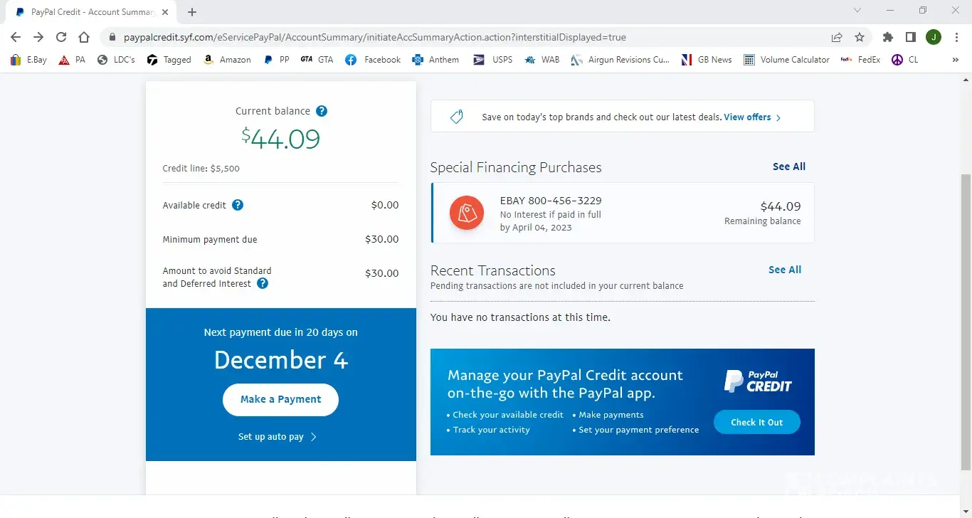 On September 29th 2022 I purchased something using Pay Pal credit, it was a special purchase agreement for $124-09 with monthly payments of just over $20. I paid $80 off this leaving a balance of $44-09 due by April 4th 2023. I always pay as much as I can to clear my balance asap. However I was then hit with a $30 minimum payment due by December 4th. According to everything I have read in the terms of agreement, regular purchases are assessed a minimum payment of $30, excluding special purchase agreements. I have spoken to multiple agents online and they still tell me I have to pay the $30 minimum payment. One agent told me I had no special purchases, if I had a special purchase then I was correct, only $20 would be due. I sent proof this was a special purchase and she still said I had to pay the $30 minimum.