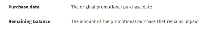 the promo rate i was told would be 6 months 0% and they gave me the 0% on the 500.00 not the larger amoutnt