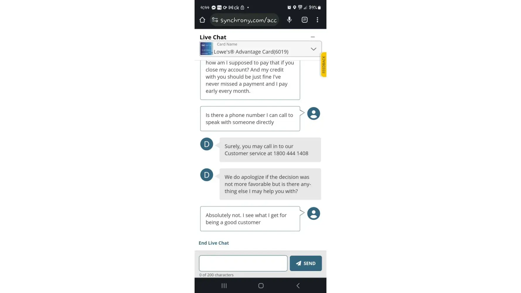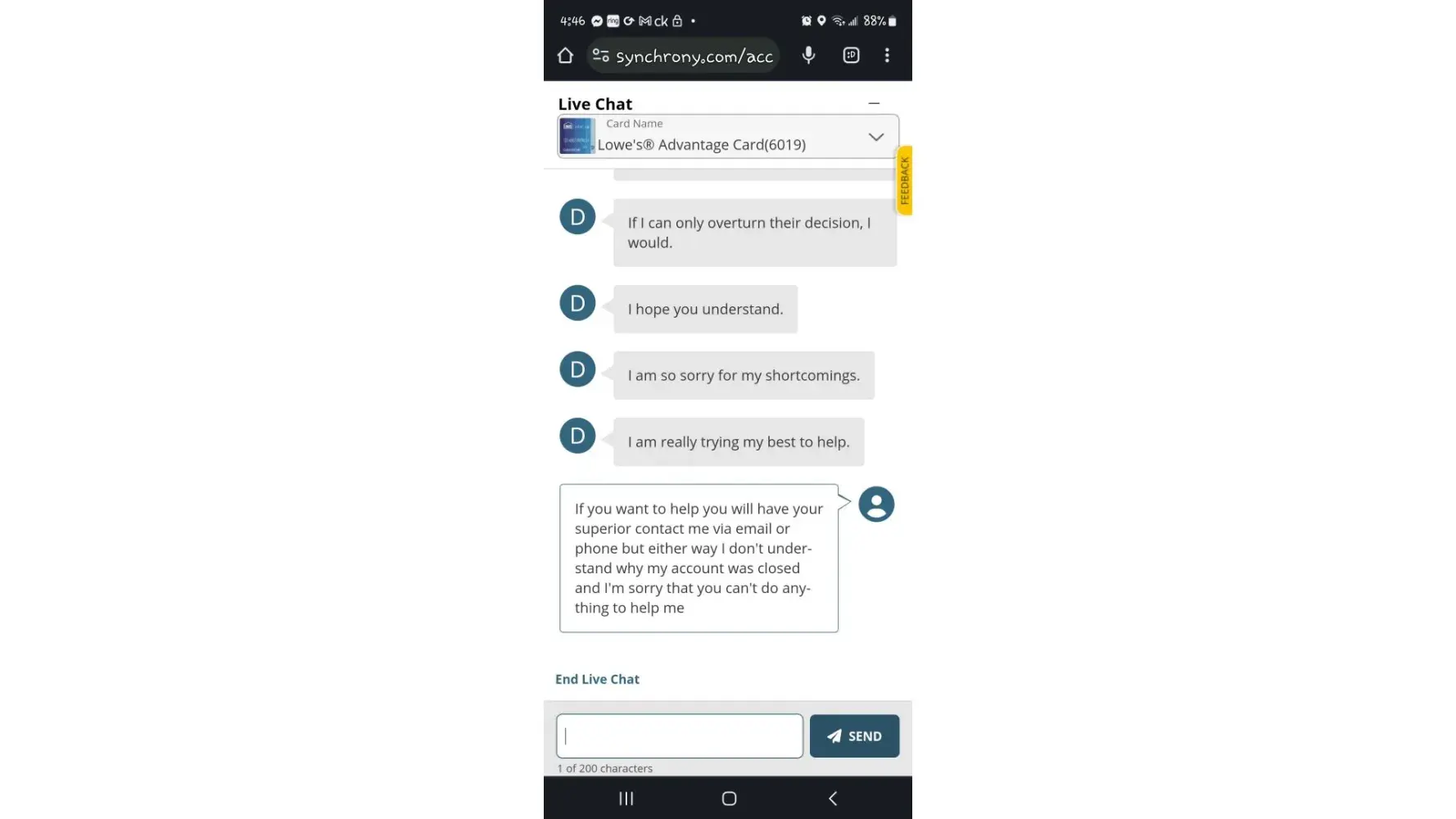 Read full complaintSynchrony bank lowes credit card unjust account closure