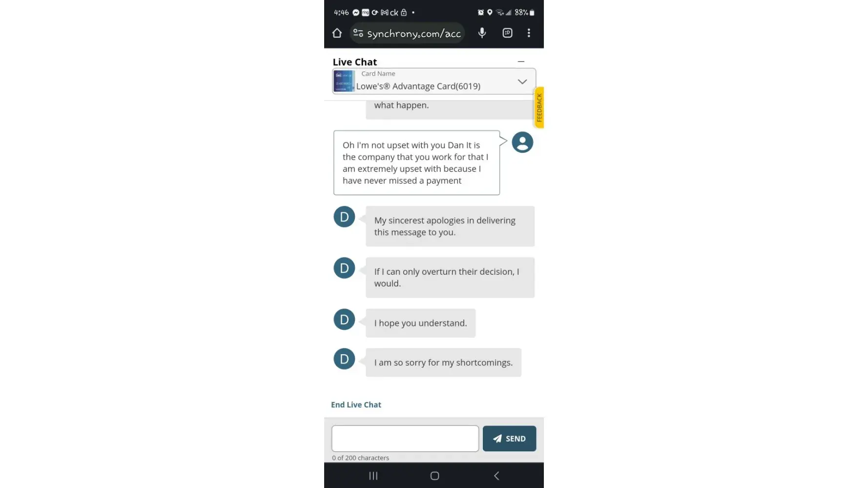 Take your 1for every single one of the inconsistencies I have encountered, how the Amazon Store Card wants to be added to the Synchrony app but the Synchrony app won’t allow it, for the website experience and how poor it is with a direct link to it provided by the app, by the webpage layout and how utterly blank and useless it is, by the AI experience on the website not even being helpful enough to bring you to the right area, for the chat experience and how they wanted to get more people involved, and for the autopay issues with what I could do on the app and how all the sudden I couldn’t do on the app out of nowhere. 1for all of that. Plus more if the Amazon call I experienced could tie into this more, but it’s already the worst experience with a company (Synchrony, not Amazon) that I have had in quite a long time.