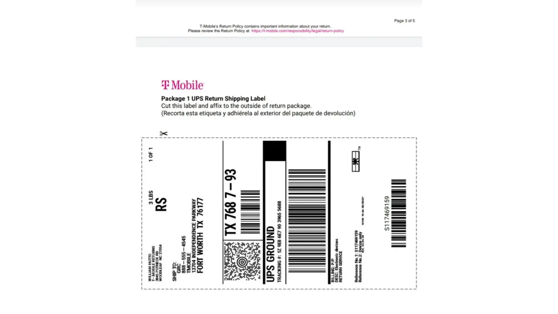 T-MOBILE is saying that it was never sent back. It was sent back in May of 2022.
