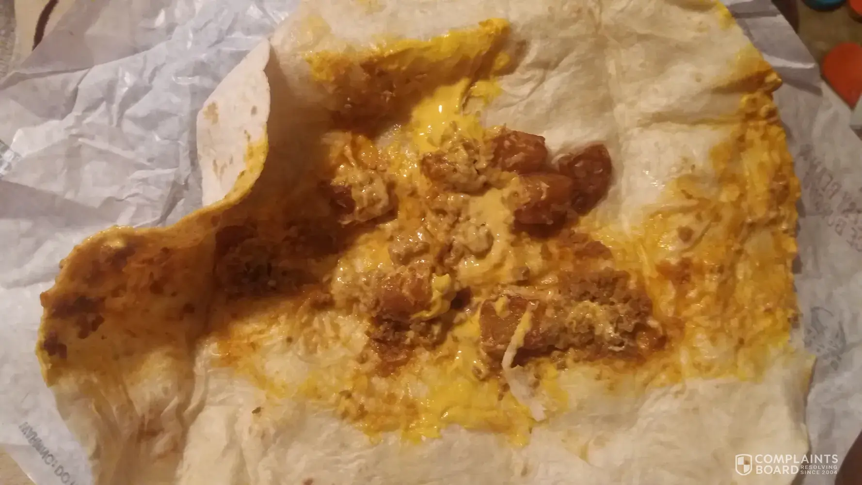 I had ate one and there was nothing but mostly wrap, so I opened the rest up and there was virtually almost nothing in them. I understand they're a dollar but there's more food in the advertised picture (the very front of the burritto) than there is in the entire item. To me this location is not only at fault for highway robbery but also skimming the substance out of their menu items.