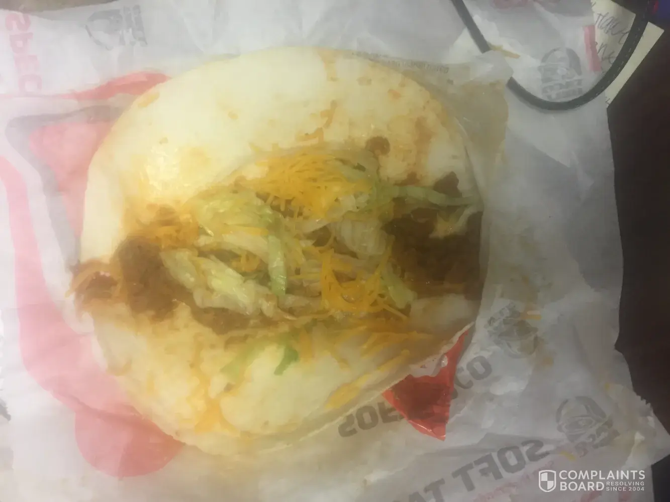 I called and spoke with customer service already but I wanted to show you what I pulled out of my bag when I got to work to eat. The shells are ice cold the meat is cold there's no sour cream on them and I paid 1.20 for there to be sour cream on all of them. One of the hard shell tacos has almost no meat in. I waited at the windo for 7-10 minutes for cold food and food without sour cream and received very poor service. The girl at the window had her back towards me the whole time leaning on the window
