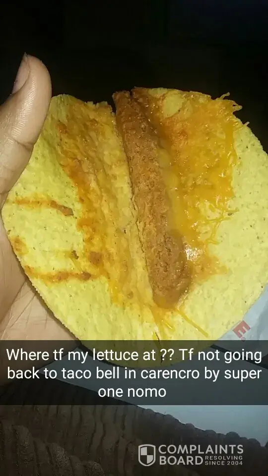 Okay so I was just chilling at taco bell and I ordered a quesadilla and it was pretty much empty like nothing in it at all. All that had anything in it was the middle pieces and like bro I need a full one if it paying for that like on god I love the customer service but like how y'all gonna do me dirty like that I need a full one that doesn't fill me up all this starch with no chicken just gonna give all these people constipation and y'all don't want that.