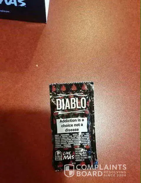And yet, Taco Bell decides to use "addiction is a choice not a disease" on their packaging? How irresponsible. How insensitive. You should be ashamed.