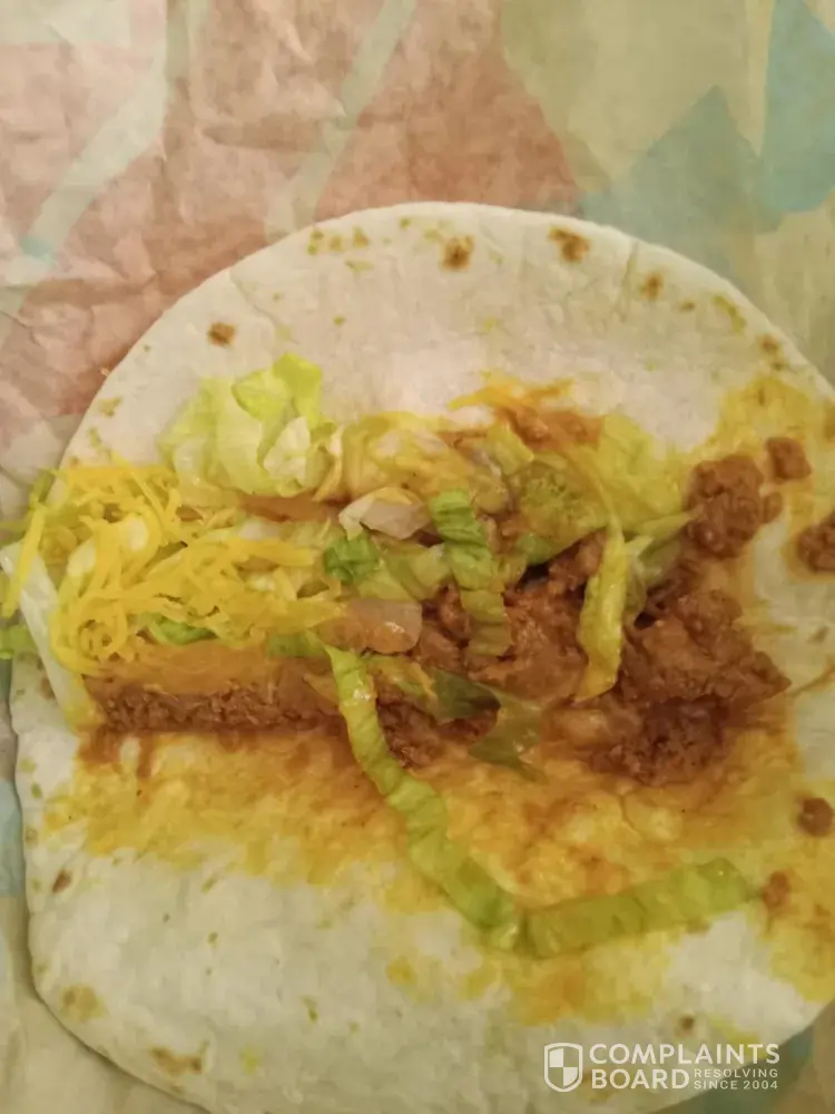 Read full complaintTwo beefy melt burritos and two soft shell taco's