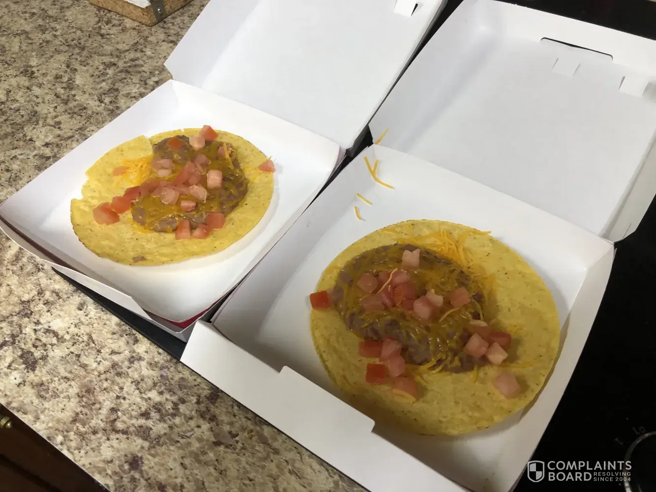 Reporting a bad food experience from 2 days ago; at your Taco Bell location at 8876 Dallas Acworth Hwy, Dallas GA 30132.