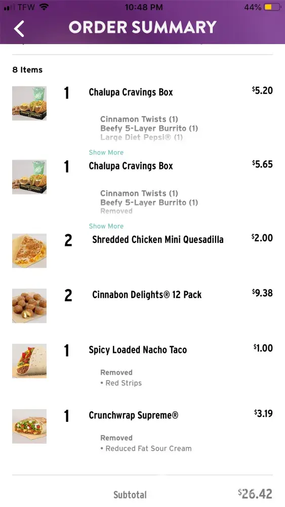 Read full complaintdouble nacho $5. meal deal/ service
