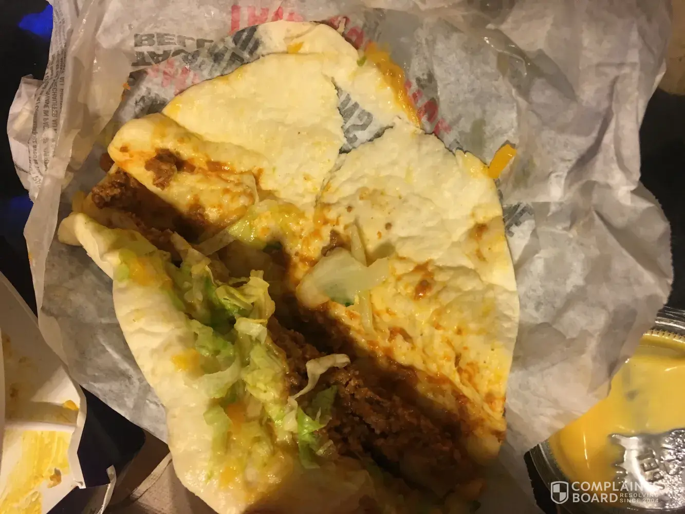 Last experience at the Huron church Windsor Ontario location was horrible. The tacos were soaked and they were not very busy.. we had a big order and the messed up the dorito and gave us a just tacos. But besides that everything was soaked ! The fry surpreme box was even soaked and fell apart. Then the soft tacos were soaked we couldn't eat them . Everything was soggy and gross ! It was also night time so they were closing and I didn't realize until I was home which is far away from that taco bell