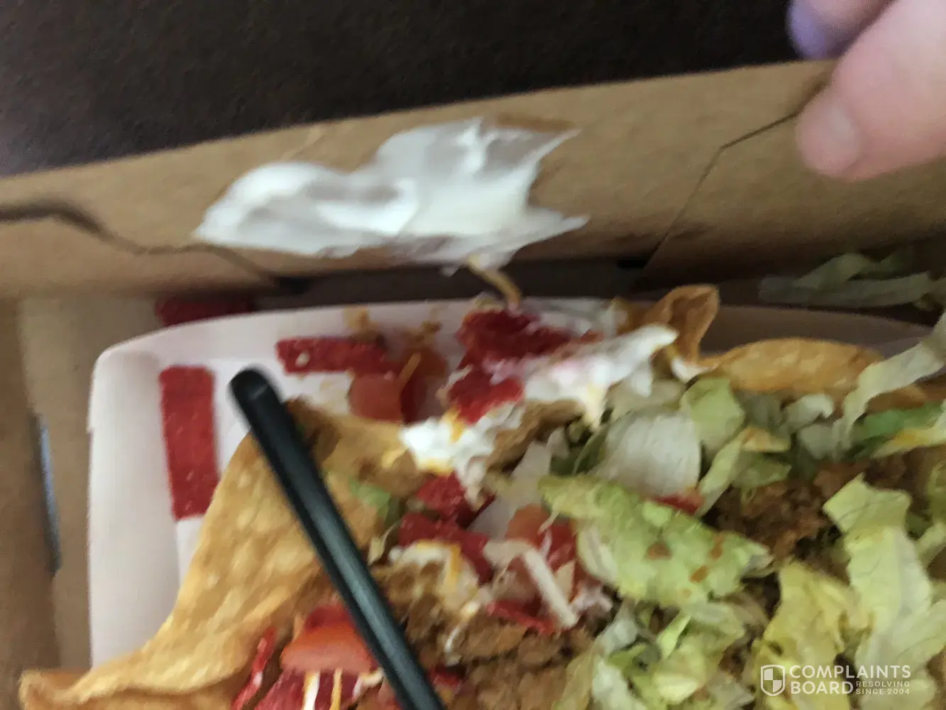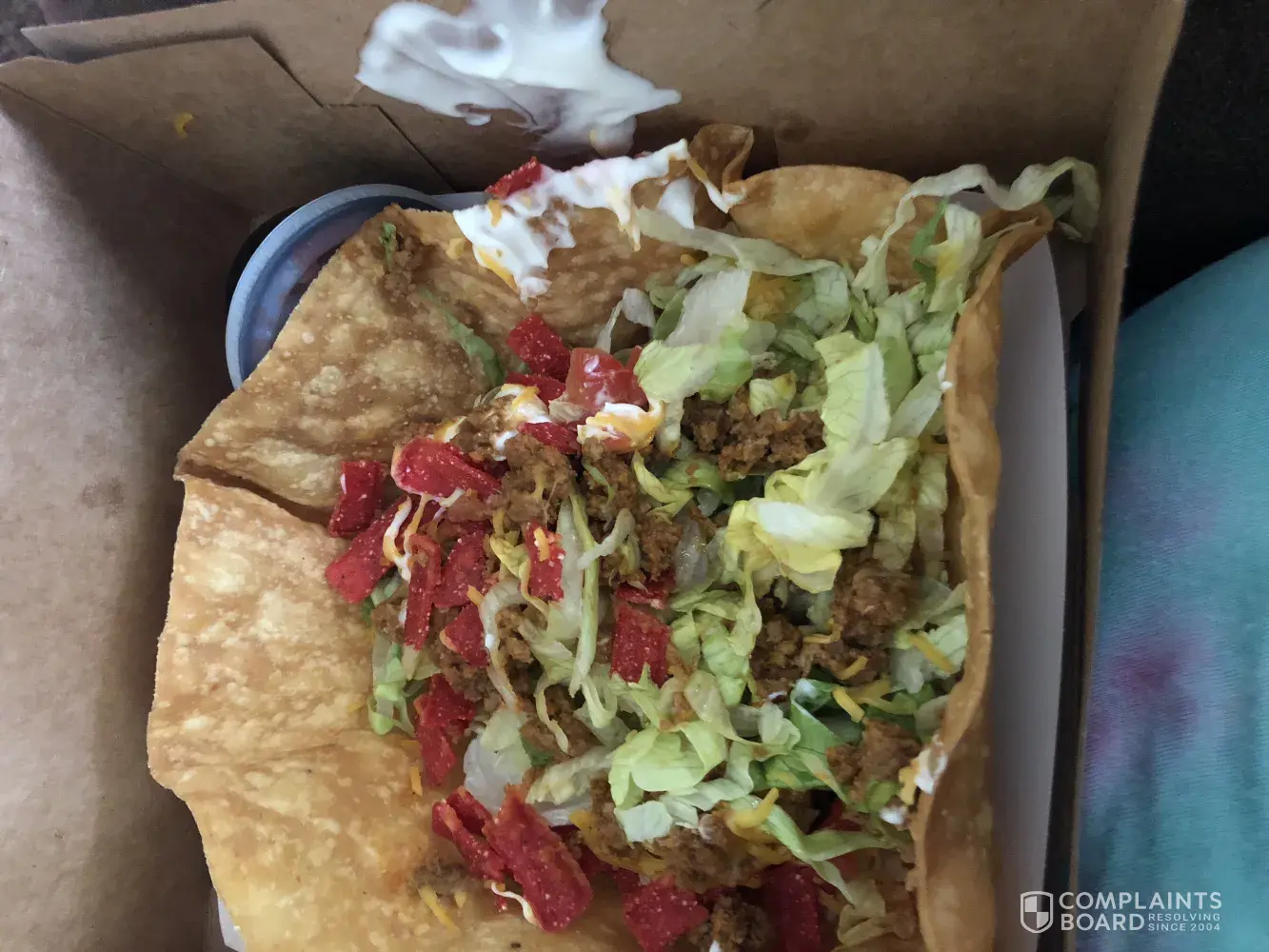 Ordered tacos with sour cream and I was charged fore it but dident get it and I woul like to know do you sell your beans by the gram because the bowel has a crown in the bottom that takes up room boy you have gone down hill now I'm at home and I want you to send me my 80 cents thank you this taco bell can't get any thing right I order burrito with out onion when I get home guess what there is onion on them it a long way back to taco bell and it cost me money to return the food and get it again I'm going to take a scale with me when you tell me how many you are supposed to get thanks