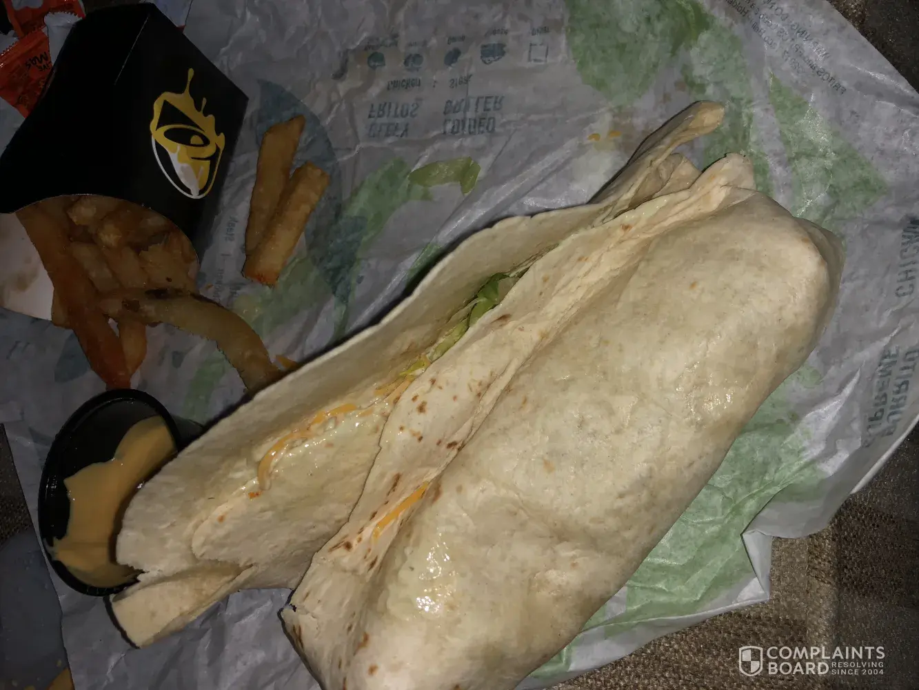 I have been eating at Taco Bell for years. I order the new nacho fries and they were half frozen. I order a grill Burrito with chicken and no chicken nor was it grilled. I can not believe this. I hate to never go back but I think this is it. I went through the drive thru and order a taco salad which was on the menu. They told me that they don't carry these items. You advertise products and none of which shows when I order the product. False advertisement is a serious issue.