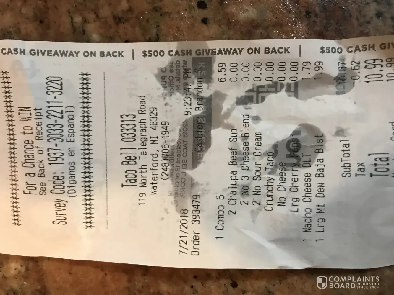 Ordered a steak quesadilla and received a chicken. No receipt. Makes mistakes frequently. Located in La Crosse WI on Mormon Coulee rd. No cars in front of me or no one behind. No excuse. Apparently if I don't make the complaint at least 350 words then no one will look at this. Another fail. All I ask is to get the order right might stop coming ti Taco Bell in general.