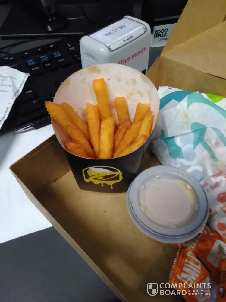 Firstly, your board says you have two things that apparently you were out of. One, was the naked chicken Chalupa, the other was a combo meal. It's still on the board, and I was not given any other option, other than recommending the nachos. That was super helpful, not. The employee forgot I was there, and even admitted to it, his name was Justin. He didn't offer anything in exchange for everything going wrong in this trip, and the food was cold. It look like it was premade and was sitting there. The sour cream tasted like it was about to expire, there was something just wrong about it. The cheese from the tacos was all over the bottom of the bag. Oh, and when I mention that he should probably change the sign, he said that they were planning on doing it tomorrow. Apparently it's not important enough to do it now. Also, I had gotten a few cheesy roll ups, and there was something in one of them. It was very pale, and squishy, it may have been a tomato. And I hate tomatoes. I was not able to finish that, and that's part of my dinner. Also, there was barely any cheese in the roll ups, way less than there usually is. He also tried giving a drink to me, which wasn't even mine. And he wouldn't of even realized if I didn't say it wasn't mine. This is an even the first time that the board has been wrong, you should really keep an eye on that. You're missing forming your loyal customers, Also, I had gotten a few cheesy roll ups, and there was something in one of them. It was very pale, and squishy, it may have been a tomato. And I hate tomatoes. I was not able to finish that, and that's part of my dinner. He also tried giving a drink to me, which wasn't even mine. And he wouldn't of even realized if I didn't say it wasn't mine. This is an even the first time that the board has been wrong, you should really keep an eye on that. You're missing forming your loyal customers, And all of your customers can easily go to McKnight instead. Don't forget that. I'm sure that the McKnight location doesn't have the naked chicken Chalupa sign still up, if they don't have it anymore, as well as the combo deals, which he didn't even say was going to change. Just that it was going to be left up to misinform your customers.