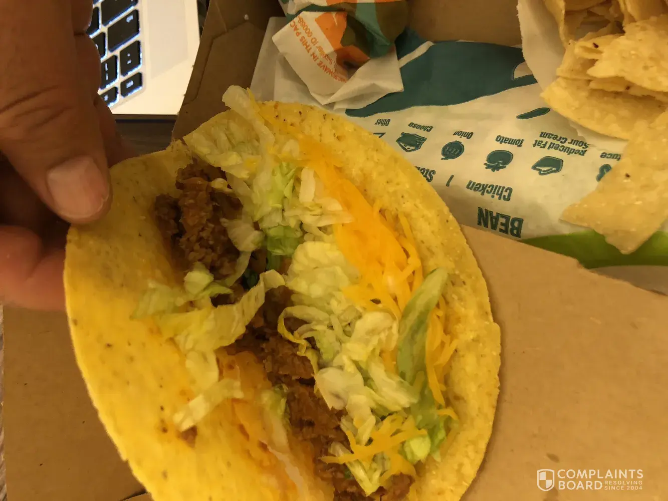 For the past 3 days in a row I've been taking my children to Taco Bell. 3 days ago we left with tacos they were barely filled with meat, a burrito that had 3 pieces of steak in it (it was the power burrito) and they forgot our Crunchwrap Supreme. Yesterday we got the four for four menu and the Sierra Mist was watered down the taco barely had any meat (it was 90% shell again). tonight the same thing happened with the tacos almost completely shell, hardly any meat or cheese and they forgot to add a quesadilla to our 4 for 4 for, along with the Gatorade being almost completely water.