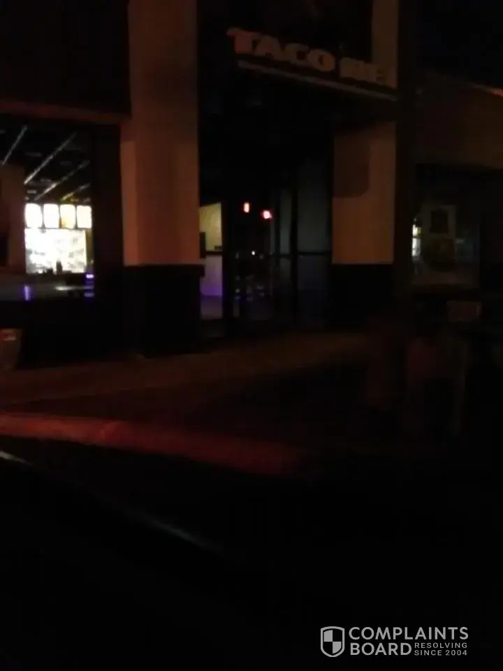 I arrived at my local Taco Bell in Charleston, IL at 2:40am or so. Today is Saturday April 1st. Taco bells closing time is 3a for the lobby, and 4a for the drive thru. I took several photos as I waited for upwards into 10 minutes at the drive thru with no answer. All the lights in the building were off save a couple in the kitchen/office area. A couple employees even came out to be caught on my camera. I've been a regular at this taco Bell for years now, and this is second time they've closed early this year! If you're ever in the area, just don't even bother thinking about late night taco Bell, if the order isn't right, they may not even be open.