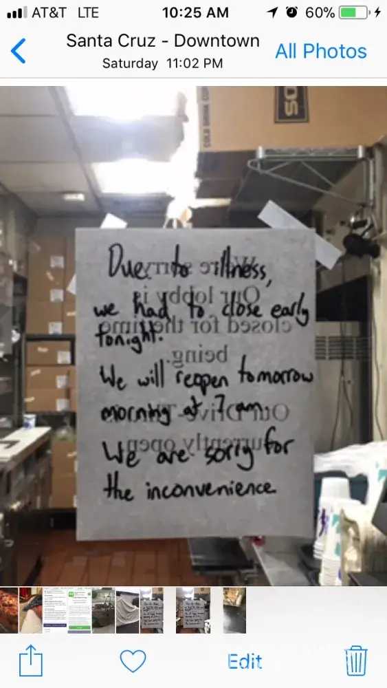 I ordered my food online to be picked up at a Taco Bell on pacific st. In Santa Cruz, CA. When I got there to get my food there was a note in the drive-thru saying that they were closed due to illness I saw an employee inside mopping. She saw me at the drive-thru window but she ignored me and disappeared in the back. I waited at the drive-thru She peeked out again . Still I get no interaction. I ended up calling Taco Bell finally a man answers and I told him - - fine, I understand you're closed due to illness however I ordered online and I'm being charge on my debit card - he told me not to worry I wouldn't be charged and I believed him until two days later I realize that I was charged and he straight lied to my face over the phone me sitting in the drivethru for 15 minutes- waiting for just anyone to approach - sick due to illness really didn't matter they shoulda just had a sign saying incompetent workers left for the evening